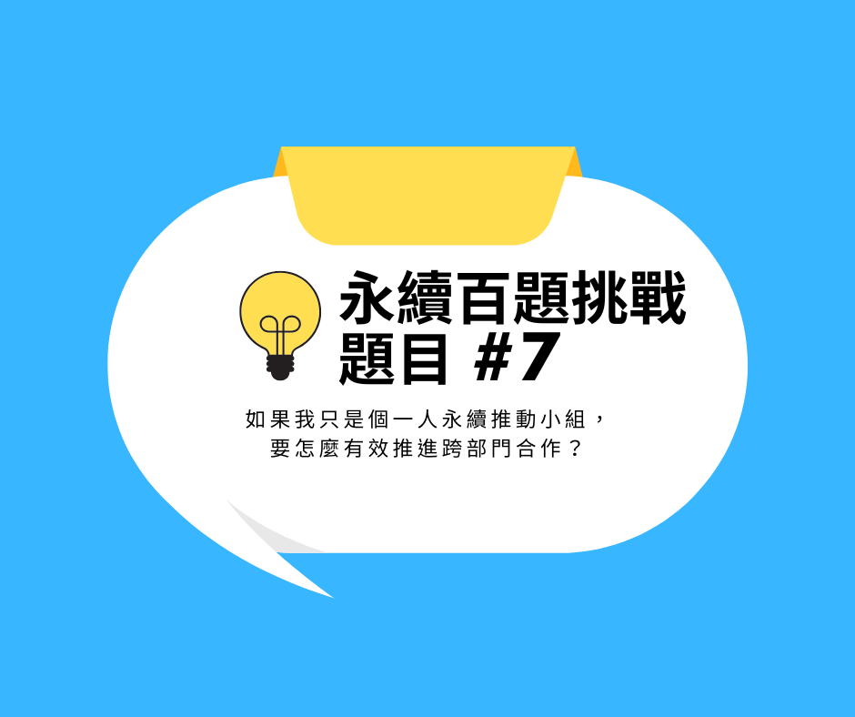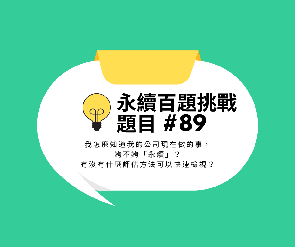 希望我所分享的內容,能幫助到其他永續工作者、或是考慮入行的朋友們!每周一早上 8:00 發布給你。期待在第 100 題時,我們都能看見不同的自己。
